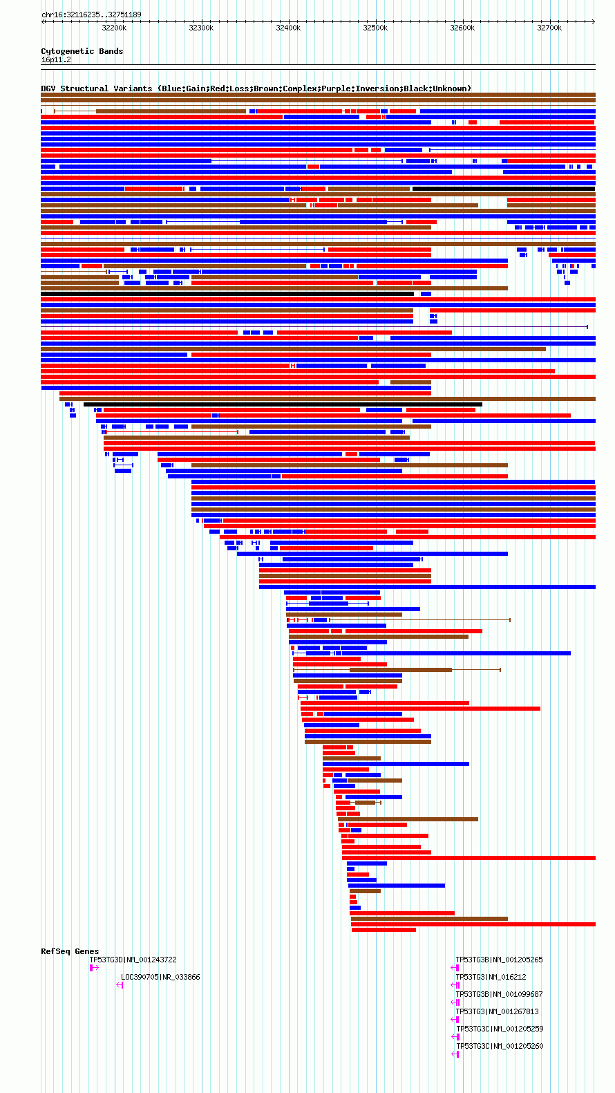 Variant DetailsVariant: nsv1057138| Internal ID | 19146357 | | Landmark | | | Location Information | | | Cytoband | 16p11.2 | | Allele length | | Assembly | Allele length | | hg38 | 634955 | | hg19 | 634955 | | hg18 | 634955 |