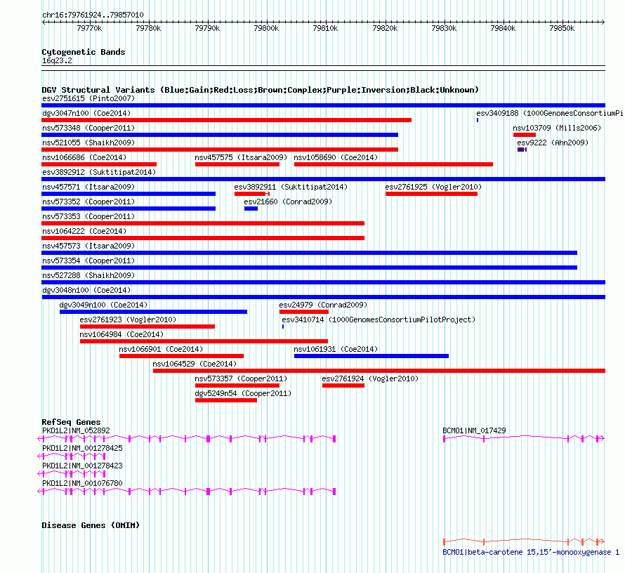Variant DetailsVariant: nsv1057230| Internal ID | 19146449 | | Landmark | | | Location Information | | | Cytoband | 16q23.2 | | Allele length | | Assembly | Allele length | | hg38 | 95087 | | hg19 | 95087 | | hg18 | 95087 |