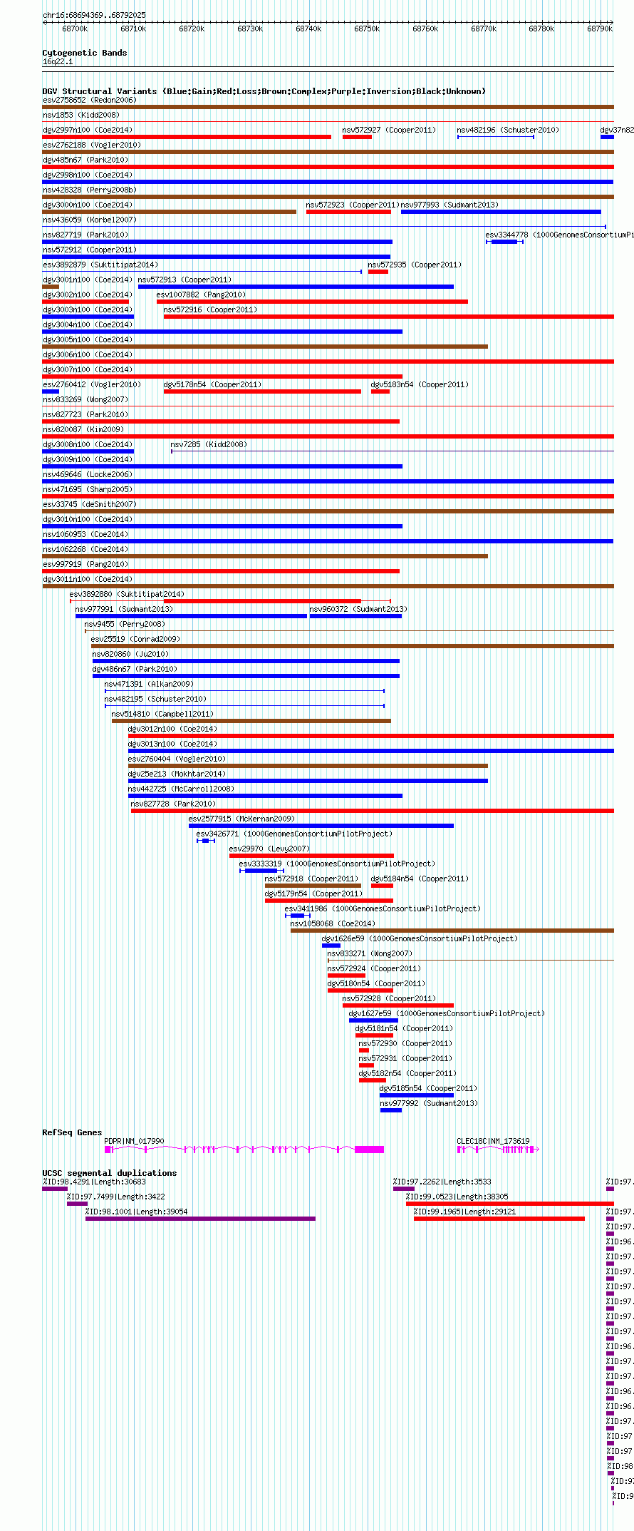 Variant DetailsVariant: nsv1057267| Internal ID | 18799798 | | Landmark | | | Location Information | | | Cytoband | 16q22.1 | | Allele length | | Assembly | Allele length | | hg38 | 97657 | | hg19 | 97657 | | hg18 | 97657 |
