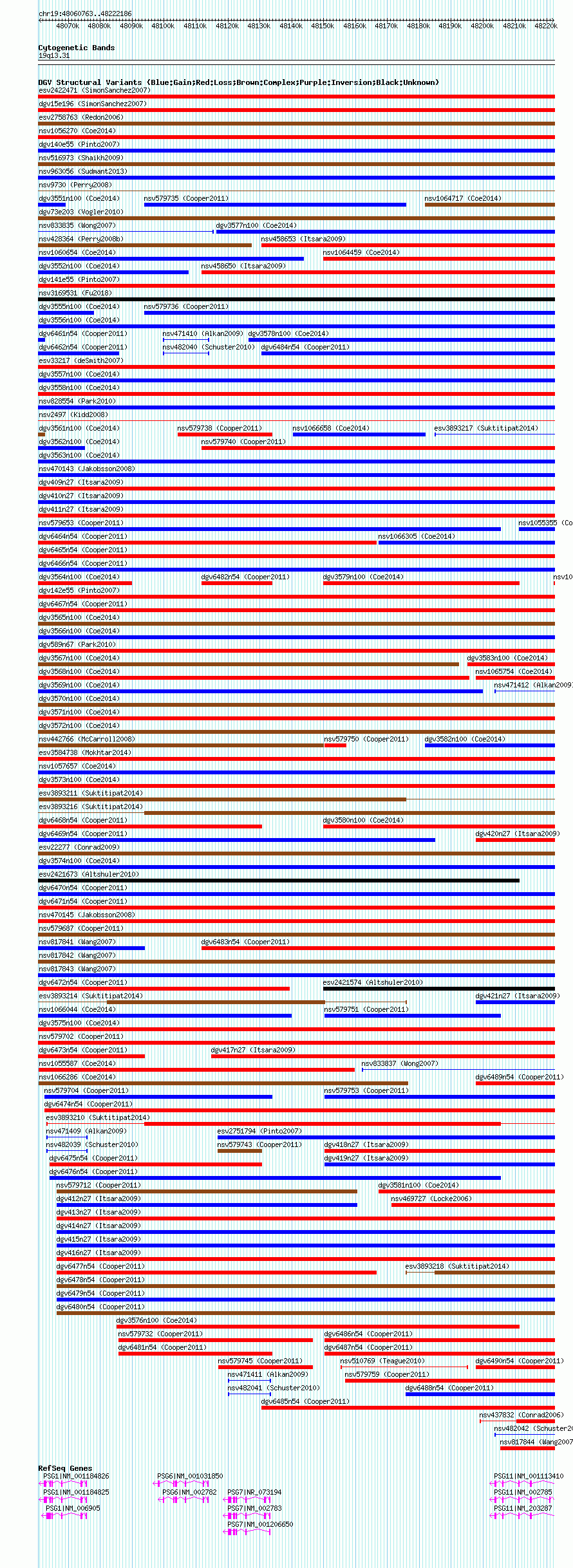 Variant DetailsVariant: nsv1057404| Internal ID | 19146623 | | Landmark | | | Location Information | | | Cytoband | 19q13.2 | | Allele length | | Assembly | Allele length | | hg38 | 161424 | | hg19 | 161424 | | hg18 | 161424 |