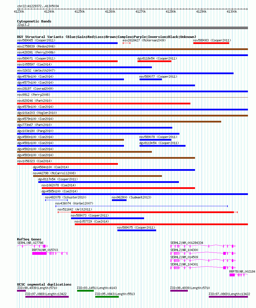 | Variant Type | CNV gain | Copy Number | | Allele State | | Allele Origin | | Probe Count | | Validation Flag | | Merged Status | M | Merged Variants | dgv4578n100 | Supporting Variants | nssv3592180, nssv3592179, nssv3592177, nssv3592176, nssv3592178 | Samples | | Known Genes | RRP7A, RRP7B, SERHL, SERHL2 | Method | SNP array | Analysis | Affymetrix SNP array copy number analysis | Platform | Affymetrix SNP Array 6.0 | Comments | | Reference | Coe_et_al_2014 | Pubmed ID | 25217958 | Accession Number(s) | nsv1058067