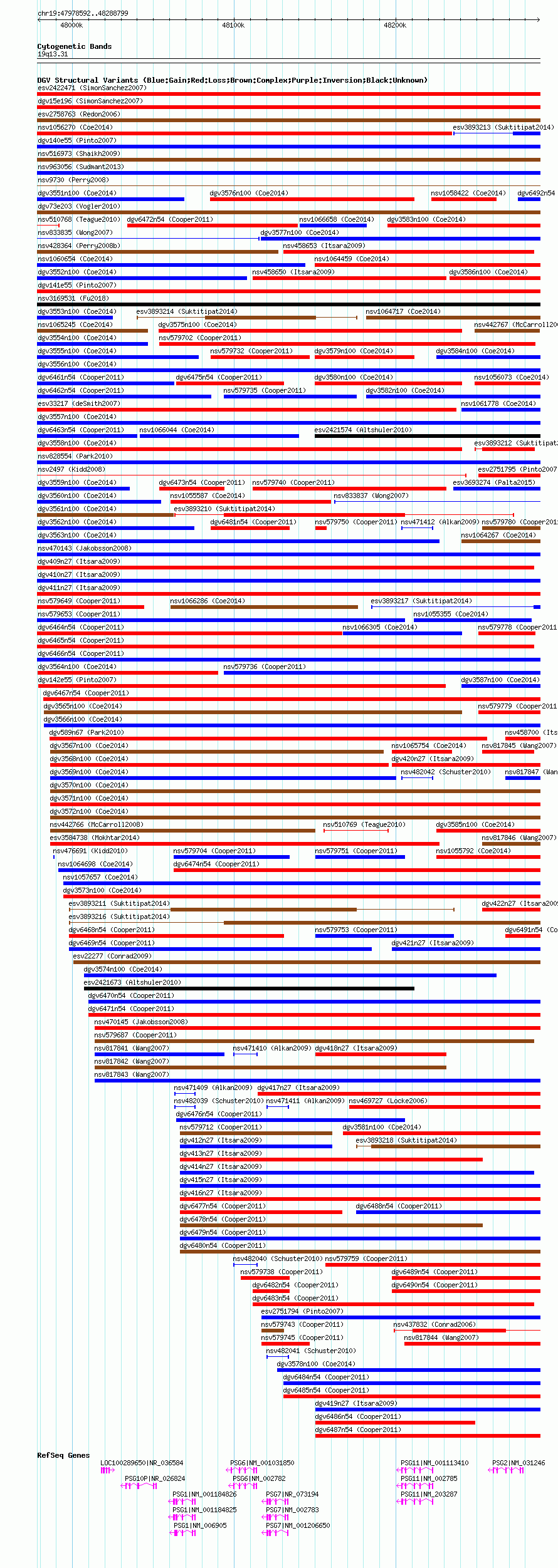 Variant DetailsVariant: nsv1058160| Internal ID | 19147379 | | Landmark | | | Location Information | | | Cytoband | 19q13.2 | | Allele length | | Assembly | Allele length | | hg38 | 310208 | | hg19 | 310208 | | hg18 | 310208 |