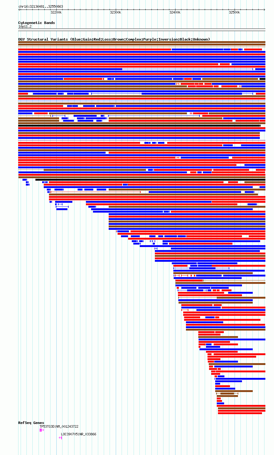 Variant DetailsVariant: nsv1058293| Internal ID | 19147512 | | Landmark | | | Location Information | | | Cytoband | 16p11.2 | | Allele length | | Assembly | Allele length | | hg38 | 414383 | | hg19 | 414383 | | hg18 | 414383 |