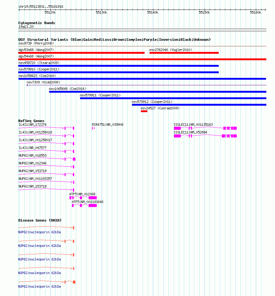 Variant DetailsVariant: nsv1058623| Internal ID | 19147842 | | Landmark | | | Location Information | | | Cytoband | 19q13.33 | | Allele length | | Assembly | Allele length | | hg38 | 48086 | | hg19 | 48086 | | hg18 | 48086 |