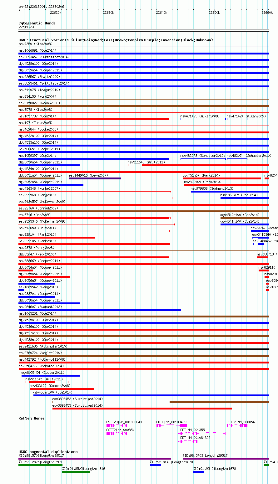 Variant DetailsVariant: nsv1058843| Internal ID | 18801374 | | Landmark | | | Location Information | | | Cytoband | 22q11.23 | | Allele length | | Assembly | Allele length | | hg38 | 47199 | | hg19 | 47203 | | hg18 | 47203 |