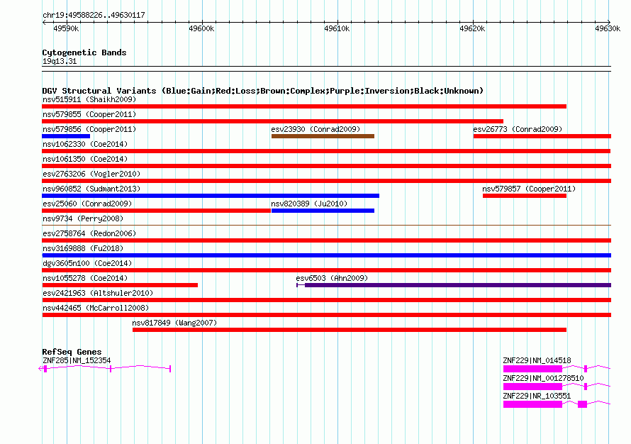 Variant DetailsVariant: nsv1059267| Internal ID | 19148486 | | Landmark | | | Location Information | | | Cytoband | 19q13.31 | | Allele length | | Assembly | Allele length | | hg38 | 41881 | | hg19 | 41892 | | hg18 | 41892 |