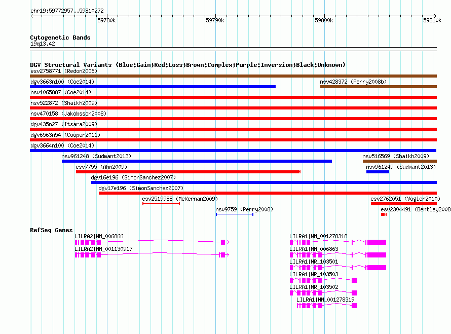 | | Variant Type | CNV gain | | Copy Number | | | Allele State | | | Allele Origin | | | Probe Count | | | Validation Flag | | | Merged Status | M | | Merged Variants | dgv3664n100 | | Supporting Variants | nssv3573424 | | Samples | | | Known Genes | LILRA1, LILRA2 | | Method | SNP array | | Analysis | Affymetrix SNP array copy number analysis | | Platform | Affymetrix SNP Array 6.0 | | Comments | | | Reference | Coe_et_al_2014 | | Pubmed ID | 25217958 | | Accession Number(s) | nsv1059338