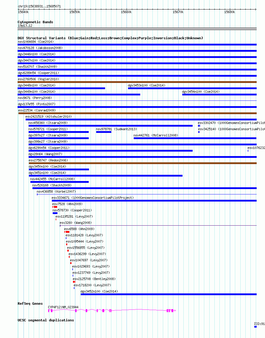 Variant DetailsVariant: nsv1059348| Internal ID | 18801879 | | Landmark | | | Location Information | | | Cytoband | 19p13.12 | | Allele length | | Assembly | Allele length | | hg38 | 46141 | | hg19 | 46141 | | hg18 | 46141 |