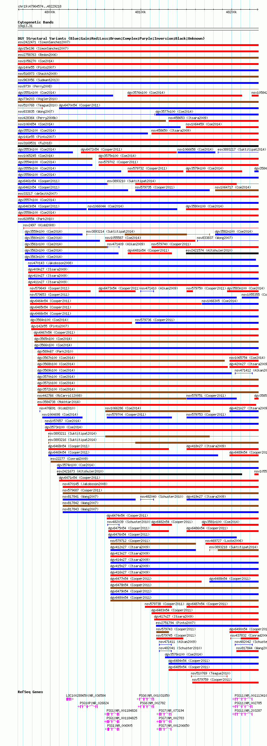 Variant DetailsVariant: nsv1059467| Internal ID | 19148686 | | Landmark | | | Location Information | | | Cytoband | 19q13.2 | | Allele length | | Assembly | Allele length | | hg38 | 264645 | | hg19 | 264645 | | hg18 | 264645 |