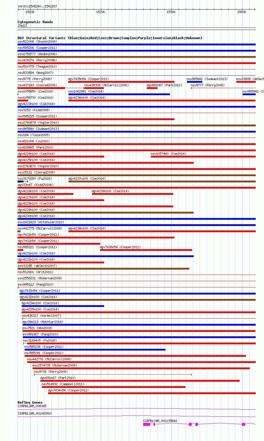 Variant DetailsVariant: nsv1059849| Internal ID | 19149068 | | Landmark | | | Location Information | | | Cytoband | 20p13 | | Allele length | | Assembly | Allele length | | hg38 | 33598 | | hg19 | 33598 | | hg18 | 33598 |