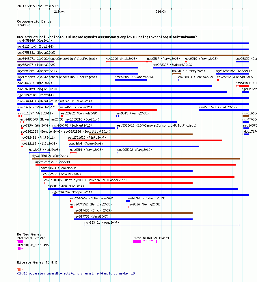 Variant DetailsVariant: nsv1060167| Internal ID | 19149386 | | Landmark | | | Location Information | | | Cytoband | 17p11.2 | | Allele length | | Assembly | Allele length | | hg38 | 227519 | | hg19 | 227452 | | hg18 | 227452 |