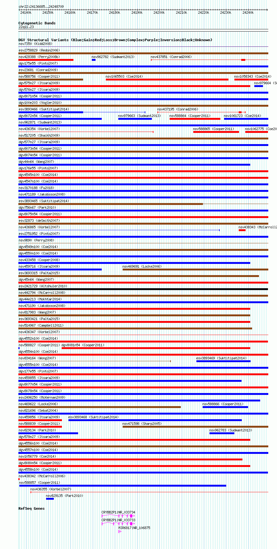 Variant DetailsVariant: nsv1060260| Internal ID | 19149479 | | Landmark | | | Location Information | | | Cytoband | 22q11.23 | | Allele length | | Assembly | Allele length | | hg38 | 112025 | | hg19 | 112025 | | hg18 | 112025 |