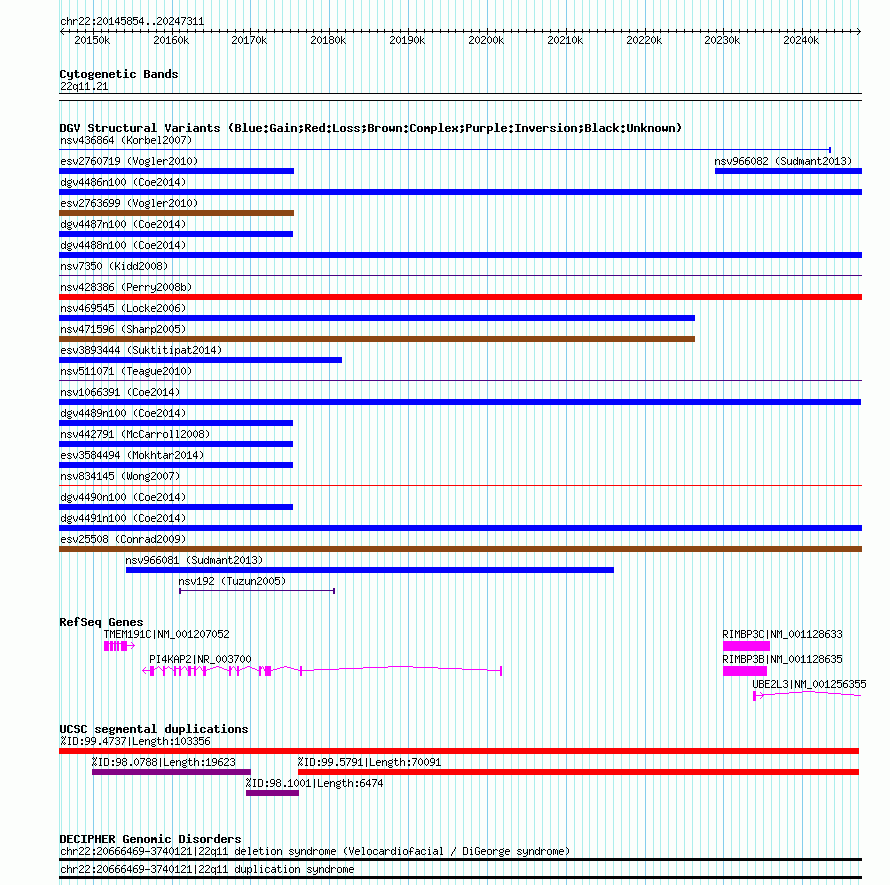 | | Variant Type | CNV gain | | Copy Number | | | Allele State | | | Allele Origin | | | Probe Count | | | Validation Flag | | | Merged Status | M | | Merged Variants | dgv4491n100 | | Supporting Variants | nssv3588809, nssv3588808, nssv3588810 | | Samples | | | Known Genes | PI4KAP2, RIMBP3B, RIMBP3C, TMEM191C, UBE2L3 | | Method | SNP array | | Analysis | Affymetrix SNP array copy number analysis | | Platform | Affymetrix SNP Array 6.0 | | Comments | | | Reference | Coe_et_al_2014 | | Pubmed ID | 25217958 | | Accession Number(s) | nsv1060702