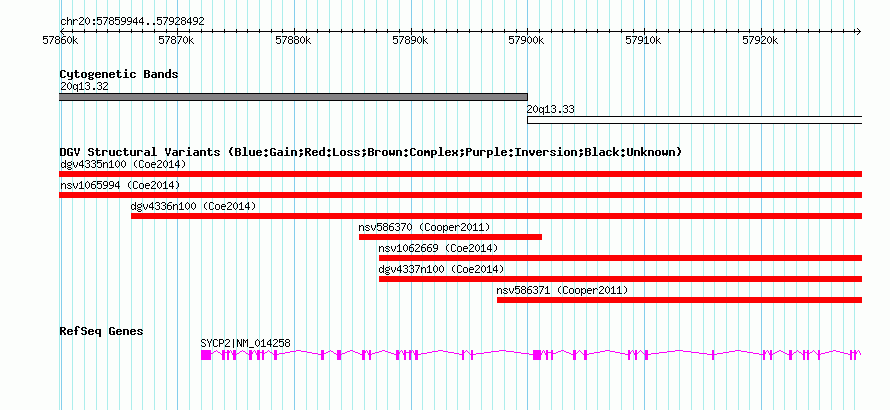 Variant DetailsVariant: nsv1060714| Internal ID | 19149933 | | Landmark | | | Location Information | | | Cytoband | 20q13.32 | | Allele length | | Assembly | Allele length | | hg38 | 68549 | | hg19 | 68549 | | hg18 | 68549 |
