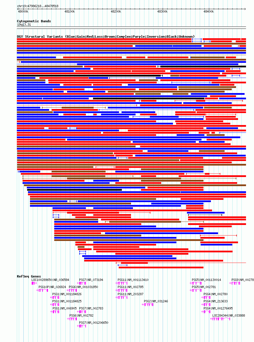 | | Variant Type | CNV gain | | Copy Number | | | Allele State | | | Allele Origin | | | Probe Count | | | Validation Flag | | | Merged Status | M | | Merged Variants | dgv3566n100 | | Supporting Variants | nssv3569518 | | Samples | | | Known Genes | LOC100289650, LOC284344, PSG1, PSG10P, PSG11, PSG2, PSG4, PSG5, PSG6, PSG7, PSG9 | | Method | SNP array | | Analysis | Affymetrix SNP array copy number analysis | | Platform | Affymetrix SNP Array 6.0 | | Comments | | | Reference | Coe_et_al_2014 | | Pubmed ID | 25217958 | | Accession Number(s) | nsv1060784