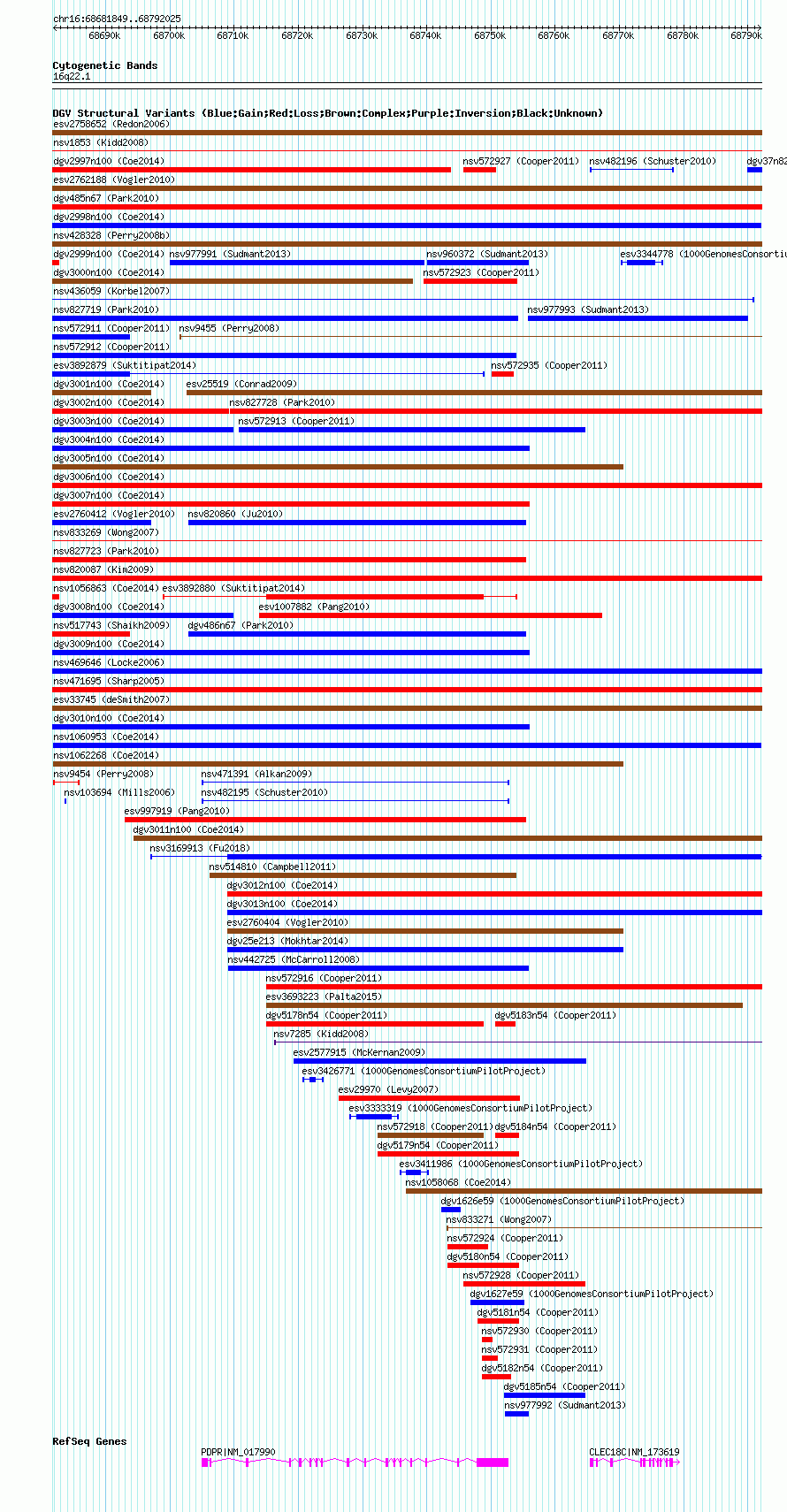 Variant DetailsVariant: nsv1060953| Internal ID | 19150172 | | Landmark | | | Location Information | | | Cytoband | 16q22.1 | | Allele length | | Assembly | Allele length | | hg38 | 110177 | | hg19 | 110177 | | hg18 | 110177 |