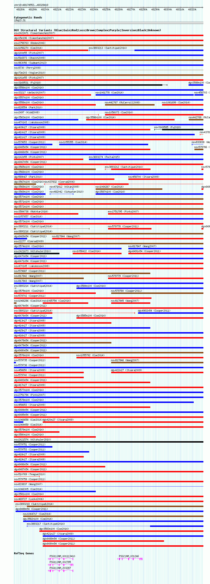 Variant DetailsVariant: nsv1060996| Internal ID | 19150215 | | Landmark | | | Location Information | | | Cytoband | 19q13.31 | | Allele length | | Assembly | Allele length | | hg38 | 153867 | | hg19 | 153867 | | hg18 | 153867 |