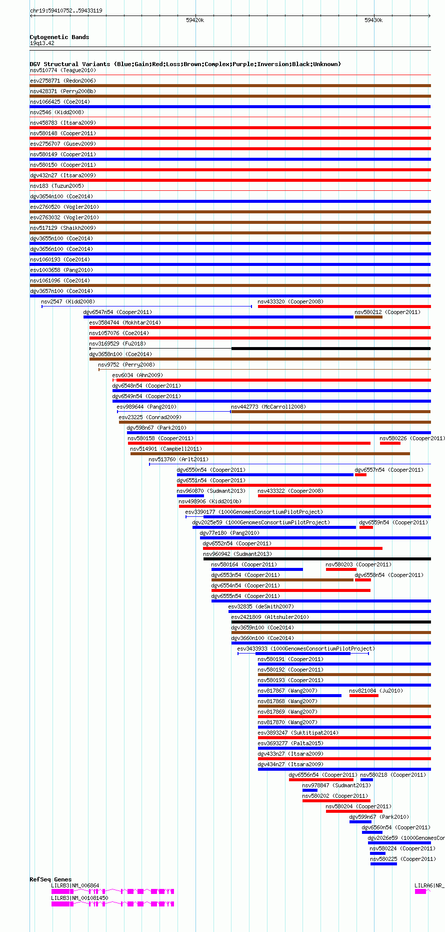 Variant DetailsVariant: nsv1061096| Internal ID | 19150315 | | Landmark | | | Location Information | | | Cytoband | 19q13.42 | | Allele length | | Assembly | Allele length | | hg38 | 22361 | | hg19 | 22368 | | hg18 | 22368 |