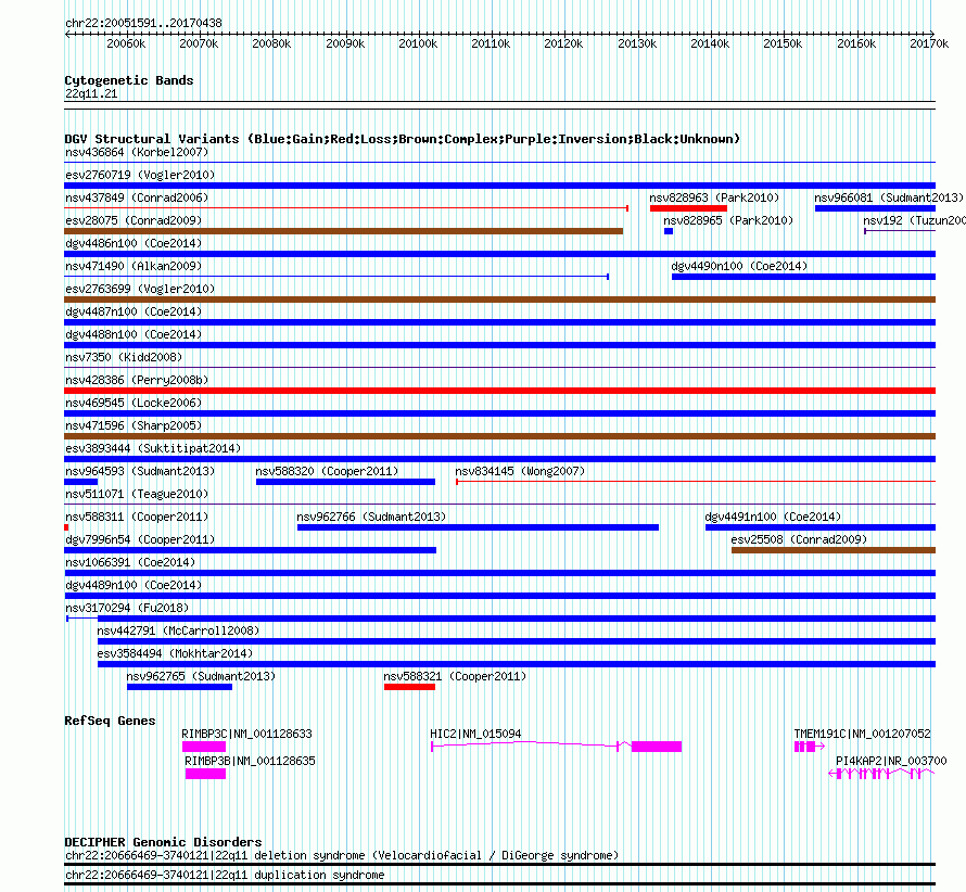 Variant DetailsVariant: nsv1061282| Internal ID | 19150501 | | Landmark | | | Location Information | | | Cytoband | 22q11.21 | | Allele length | | Assembly | Allele length | | hg38 | 118848 | | hg19 | 118848 | | hg18 | 118848 |