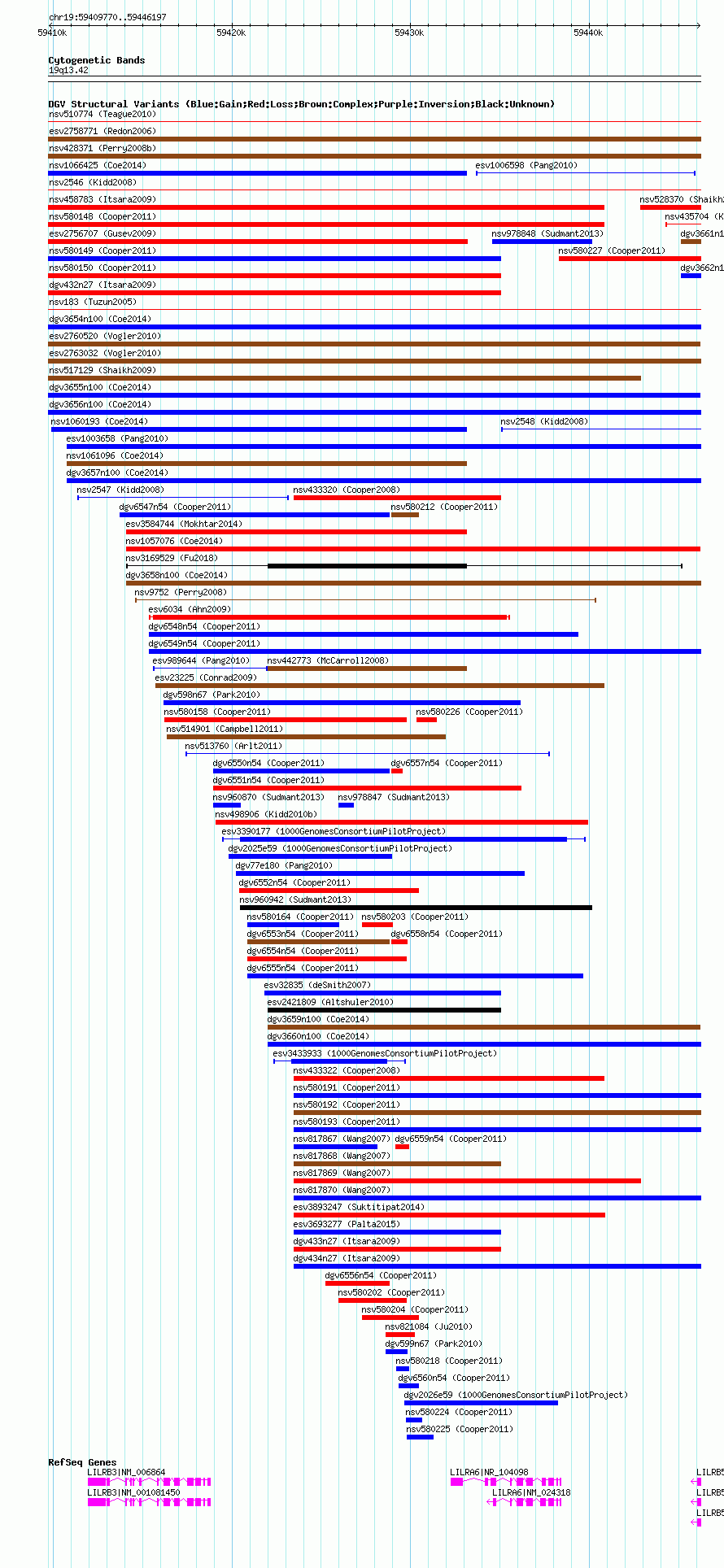 Variant DetailsVariant: nsv1061563| Internal ID | 19150782 | | Landmark | | | Location Information | | | Cytoband | 19q13.42 | | Allele length | | Assembly | Allele length | | hg38 | 36433 | | hg19 | 36428 | | hg18 | 36428 |