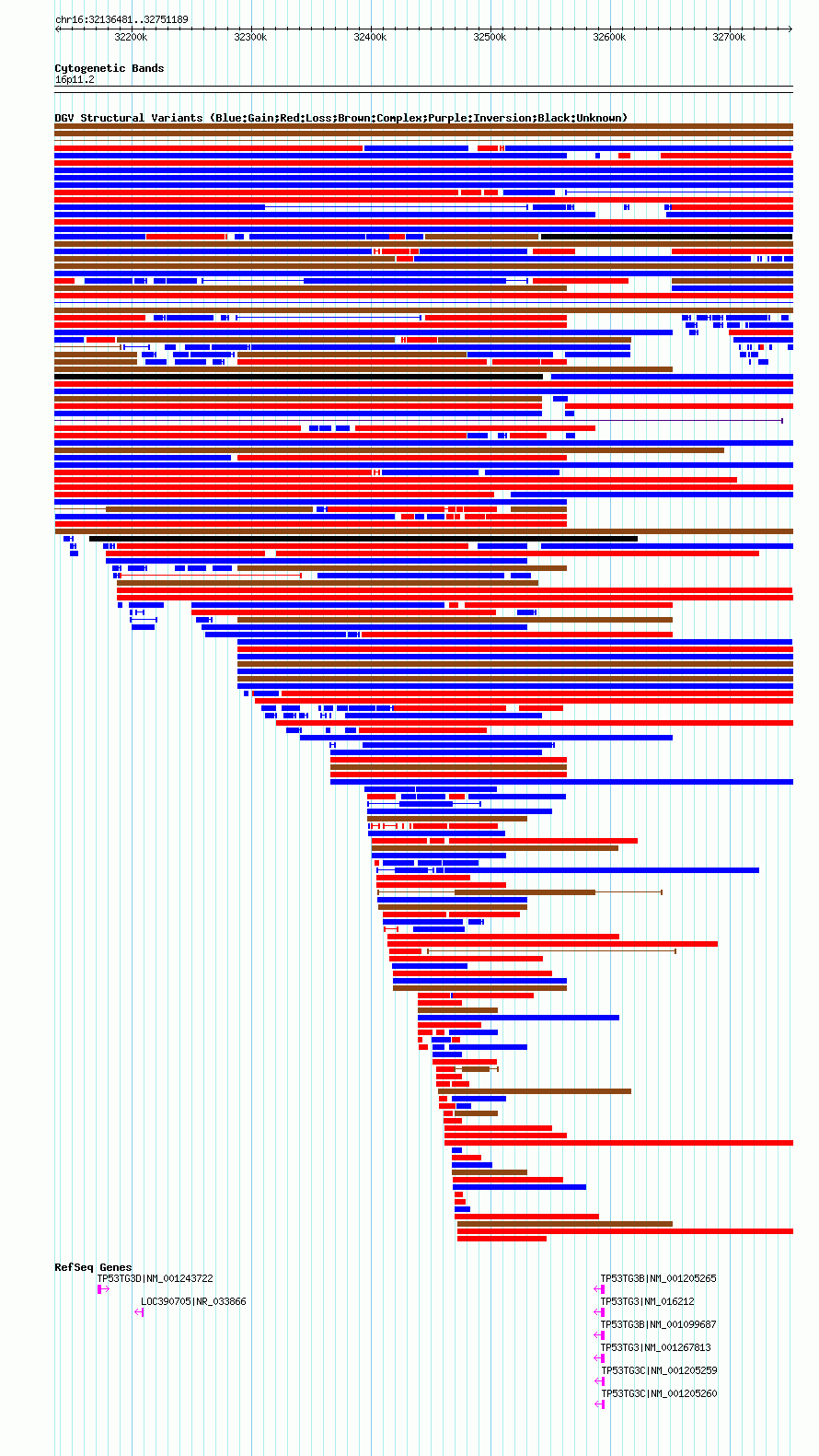 Variant DetailsVariant: nsv1061591| Internal ID | 19150810 | | Landmark | | | Location Information | | | Cytoband | 16p11.2 | | Allele length | | Assembly | Allele length | | hg38 | 614709 | | hg19 | 614709 | | hg18 | 614709 |