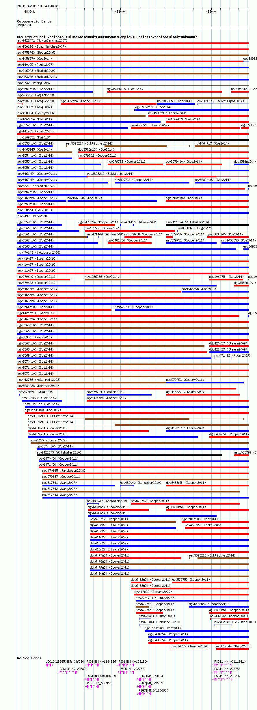 Variant DetailsVariant: nsv1061783| Internal ID | 19151002 | | Landmark | | | Location Information | | | Cytoband | 19q13.2 | | Allele length | | Assembly | Allele length | | hg38 | 254625 | | hg19 | 254625 | | hg18 | 254625 |