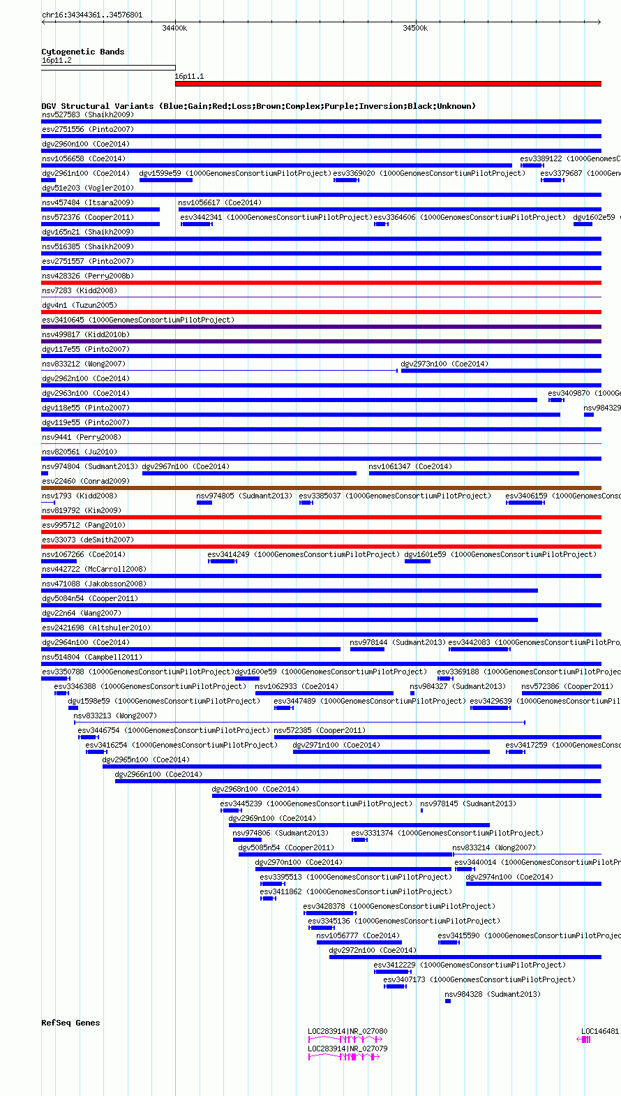 Variant DetailsVariant: nsv1061797| Internal ID | 19151016 | | Landmark | | | Location Information | | | Cytoband | 16p11.1 | | Allele length | | Assembly | Allele length | | hg38 | 232441 | | hg19 | 232441 | | hg18 | 232441 |