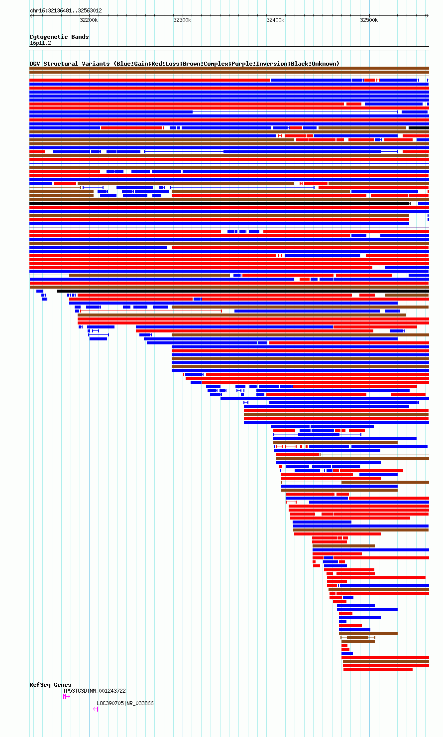 Variant DetailsVariant: nsv1061903| Internal ID | 19151122 | | Landmark | | | Location Information | | | Cytoband | 16p11.2 | | Allele length | | Assembly | Allele length | | hg38 | 426532 | | hg19 | 426532 | | hg18 | 426532 |