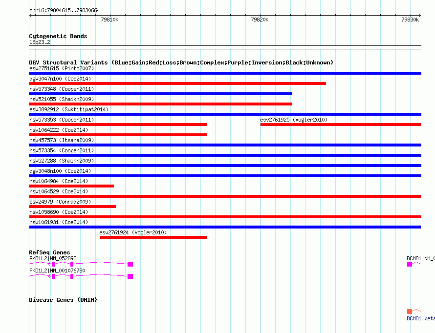 Variant DetailsVariant: nsv1061931| Internal ID | 19151150 | | Landmark | | | Location Information | | | Cytoband | 16q23.2 | | Allele length | | Assembly | Allele length | | hg38 | 26050 | | hg19 | 26050 | | hg18 | 26050 |