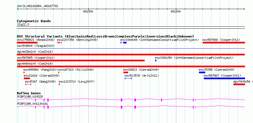 Variant DetailsVariant: nsv1061940| Internal ID | 19151159 | | Landmark | | | Location Information | | | Cytoband | 21q22.3 | | Allele length | | Assembly | Allele length | | hg38 | 25909 | | hg19 | 25909 | | hg18 | 25909 |