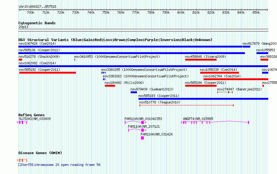 Variant DetailsVariant: nsv1062082| Internal ID | 19151301 | | Landmark | | | Location Information | | | Cytoband | 20p13 | | Allele length | | Assembly | Allele length | | hg38 | 165693 | | hg19 | 165692 | | hg18 | 165692 |