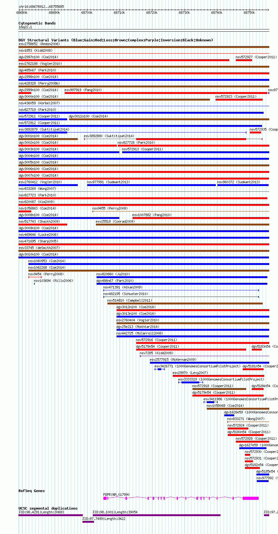 | Cytoband | 16q22.1 |
