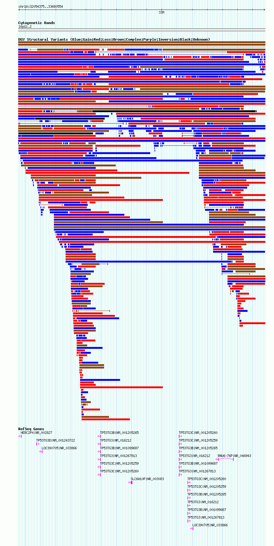 | | Variant Type | CNV gain+loss | | Copy Number | | | Allele State | | | Allele Origin | | | Probe Count | | | Validation Flag | | | Merged Status | M | | Merged Variants | dgv2844n100 | | Supporting Variants | nssv3716288, nssv3716284, nssv3550312, nssv3550326, nssv3550322, nssv3550310, nssv3550311, nssv3550323, nssv3716281, nssv3716280, nssv3716279, nssv3716278, nssv3550318, nssv3550314, nssv3550320, nssv3550315, nssv3716286, nssv3550317, nssv3716287, nssv3716285, nssv3550319, nssv3550313, nssv3550321, nssv3550325, nssv3716289, nssv3716283, nssv3550324, nssv3550316, nssv3716282 | | Samples | | | Known Genes | HERC2P4, LOC390705, RNU6-76P, SLC6A10P, TP53TG3, TP53TG3B, TP53TG3C, TP53TG3D | | Method | SNP array | | Analysis | Affymetrix SNP array copy number analysis | | Platform | Affymetrix SNP Array 6.0 | | Comments | | | Reference | Coe_et_al_2014 | | Pubmed ID | 25217958 | | Accession Number(s) | nsv1062501
