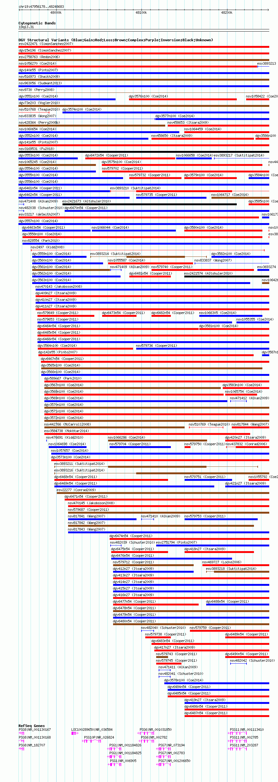 | | Variant Type | CNV gain | | Copy Number | | | Allele State | | | Allele Origin | | | Probe Count | | | Validation Flag | | | Merged Status | M | | Merged Variants | dgv3556n100 | | Supporting Variants | nssv3568861 | | Samples | | | Known Genes | LOC100289650, PSG1, PSG10P, PSG11, PSG6, PSG7, PSG8 | | Method | SNP array | | Analysis | Affymetrix SNP array copy number analysis | | Platform | Affymetrix SNP Array 6.0 | | Comments | | | Reference | Coe_et_al_2014 | | Pubmed ID | 25217958 | | Accession Number(s) | nsv1062710