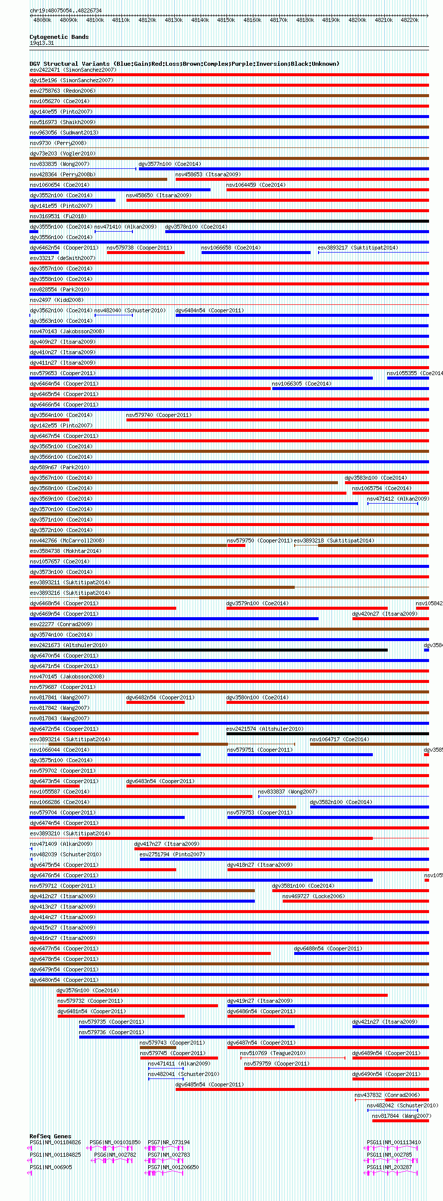 Variant DetailsVariant: nsv1062763| Internal ID | 19151982 | | Landmark | | | Location Information | | | Cytoband | 19q13.2 | | Allele length | | Assembly | Allele length | | hg38 | 151681 | | hg19 | 151681 | | hg18 | 151681 |