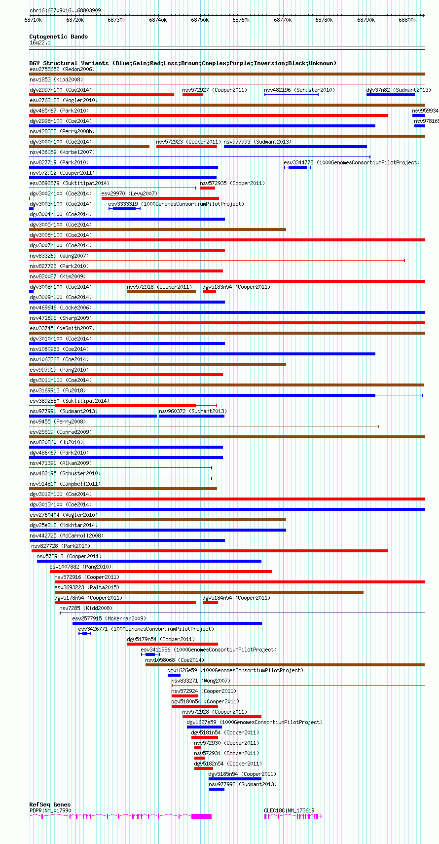 Variant DetailsVariant: nsv1063341| Internal ID | 19152560 | | Landmark | | | Location Information | | | Cytoband | 16q22.1 | | Allele length | | Assembly | Allele length | | hg38 | 94894 | | hg19 | 94894 | | hg18 | 94894 |