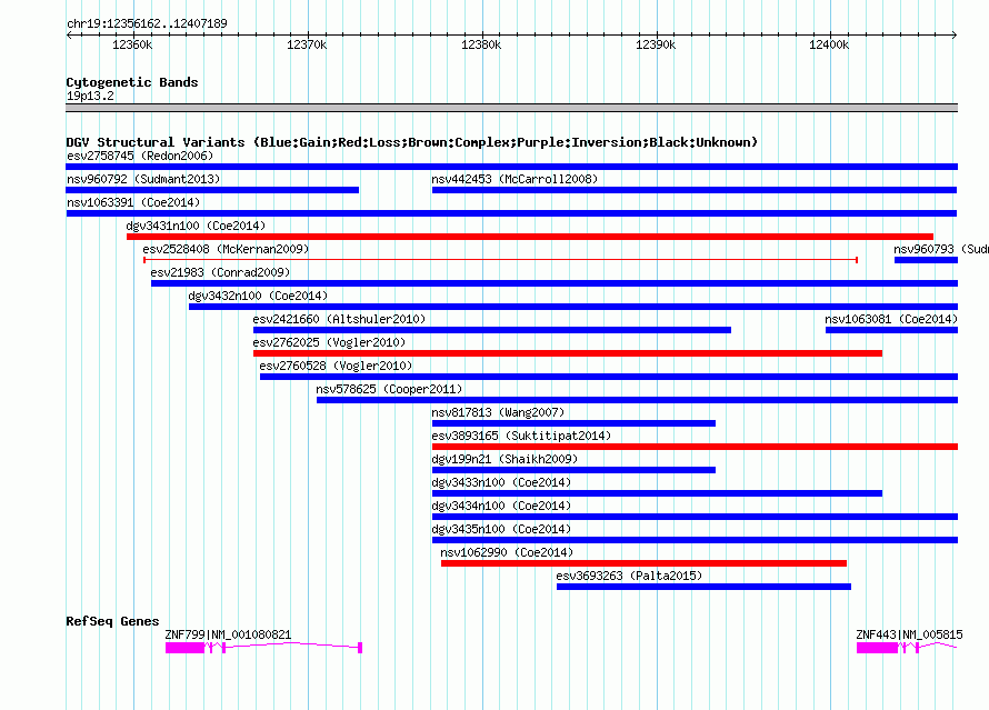 Variant DetailsVariant: nsv1063391| Internal ID | 19152610 | | Landmark | | | Location Information | | | Cytoband | 19p13.2 | | Allele length | | Assembly | Allele length | | hg38 | 51028 | | hg19 | 51028 | | hg18 | 51028 |