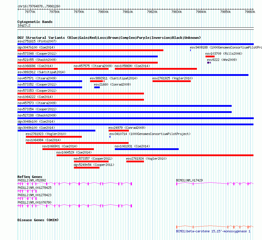 Variant DetailsVariant: nsv1063482| Internal ID | 19152701 | | Landmark | | | Location Information | | | Cytoband | 16q23.2 | | Allele length | | Assembly | Allele length | | hg38 | 96383 | | hg19 | 96383 | | hg18 | 96383 |