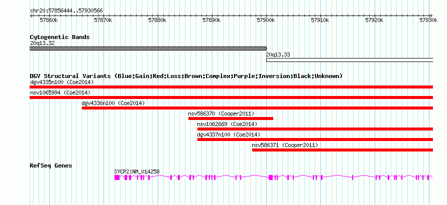 Variant DetailsVariant: nsv1063750| Internal ID | 19152969 | | Landmark | | | Location Information | | | Cytoband | 20q13.32 | | Allele length | | Assembly | Allele length | | hg38 | 74123 | | hg19 | 74123 | | hg18 | 74123 |
