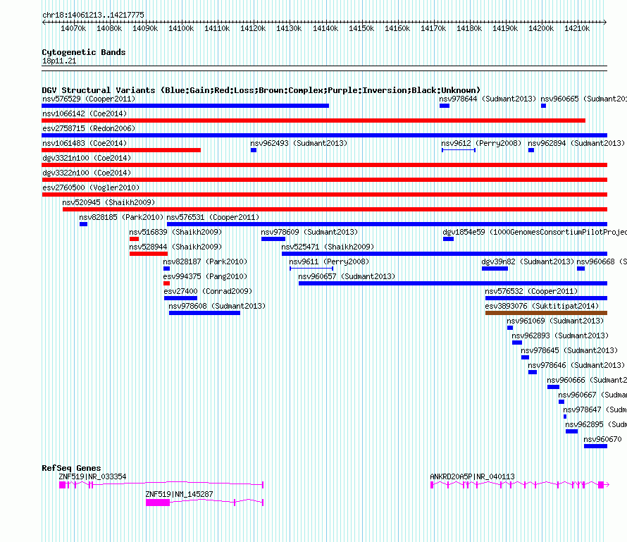 Variant DetailsVariant: nsv1063794| Internal ID | 19153013 | | Landmark | | | Location Information | | | Cytoband | 18p11.21 | | Allele length | | Assembly | Allele length | | hg38 | 156563 | | hg19 | 156563 | | hg18 | 156563 |