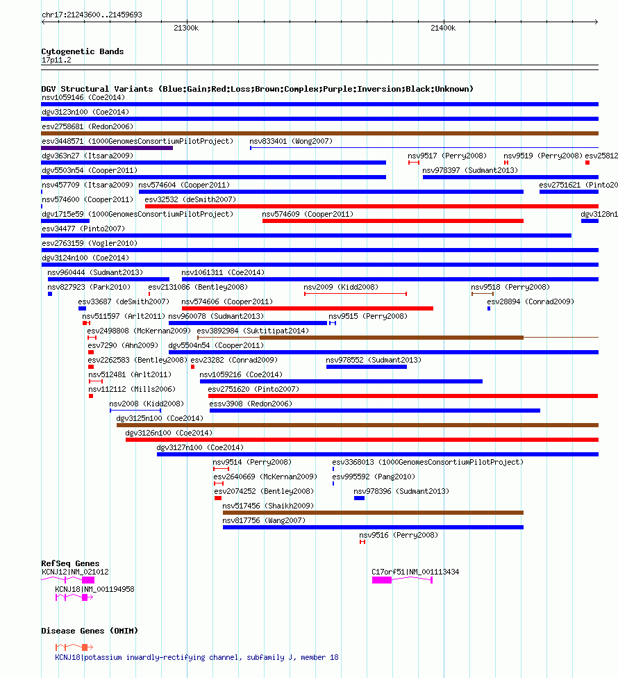 Variant DetailsVariant: nsv1063911| Internal ID | 19153130 | | Landmark | | | Location Information | | | Cytoband | 17p11.2 | | Allele length | | Assembly | Allele length | | hg38 | 216139 | | hg19 | 216094 | | hg18 | 216094 |
