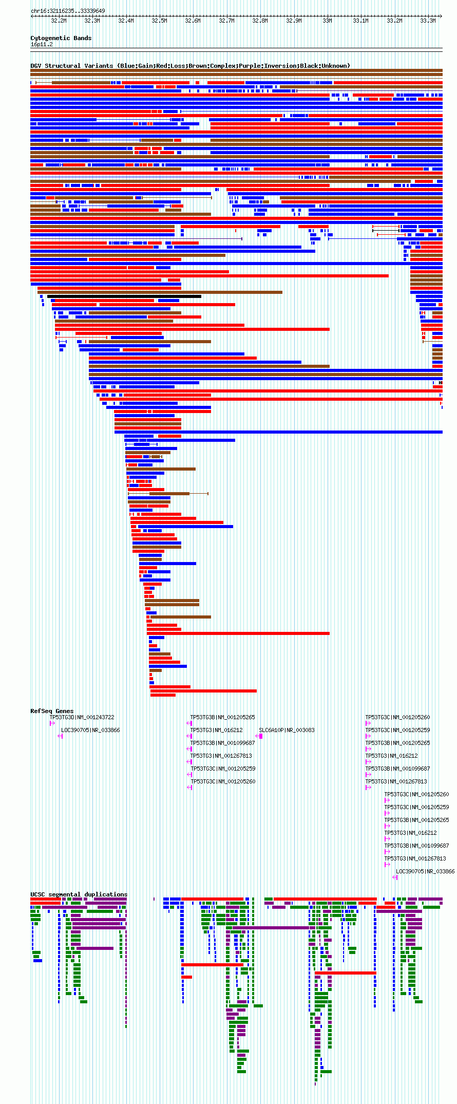 Variant DetailsVariant: nsv1064062| Internal ID | 18806593 | | Landmark | | | Location Information | | | Cytoband | 16p11.2 | | Allele length | | Assembly | Allele length | | hg38 | 1432269 | | hg19 | 1223415 | | hg18 | 1223415 |