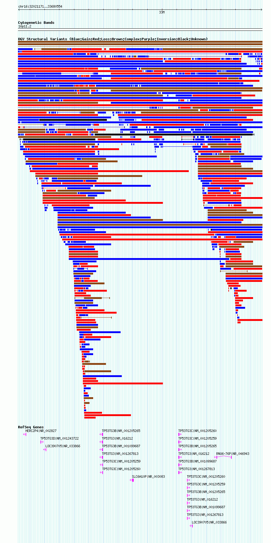 | | Variant Type | CNV gain+loss | | Copy Number | | | Allele State | | | Allele Origin | | | Probe Count | | | Validation Flag | | | Merged Status | M | | Merged Variants | dgv2844n100 | | Supporting Variants | nssv3716263, nssv3716266, nssv3550270, nssv3716265, nssv3550274, nssv3716264, nssv3550273, nssv3550271, nssv3550272 | | Samples | | | Known Genes | HERC2P4, LOC390705, RNU6-76P, SLC6A10P, TP53TG3, TP53TG3B, TP53TG3C, TP53TG3D | | Method | SNP array | | Analysis | Affymetrix SNP array copy number analysis | | Platform | Affymetrix SNP Array 6.0 | | Comments | | | Reference | Coe_et_al_2014 | | Pubmed ID | 25217958 | | Accession Number(s) | nsv1064198