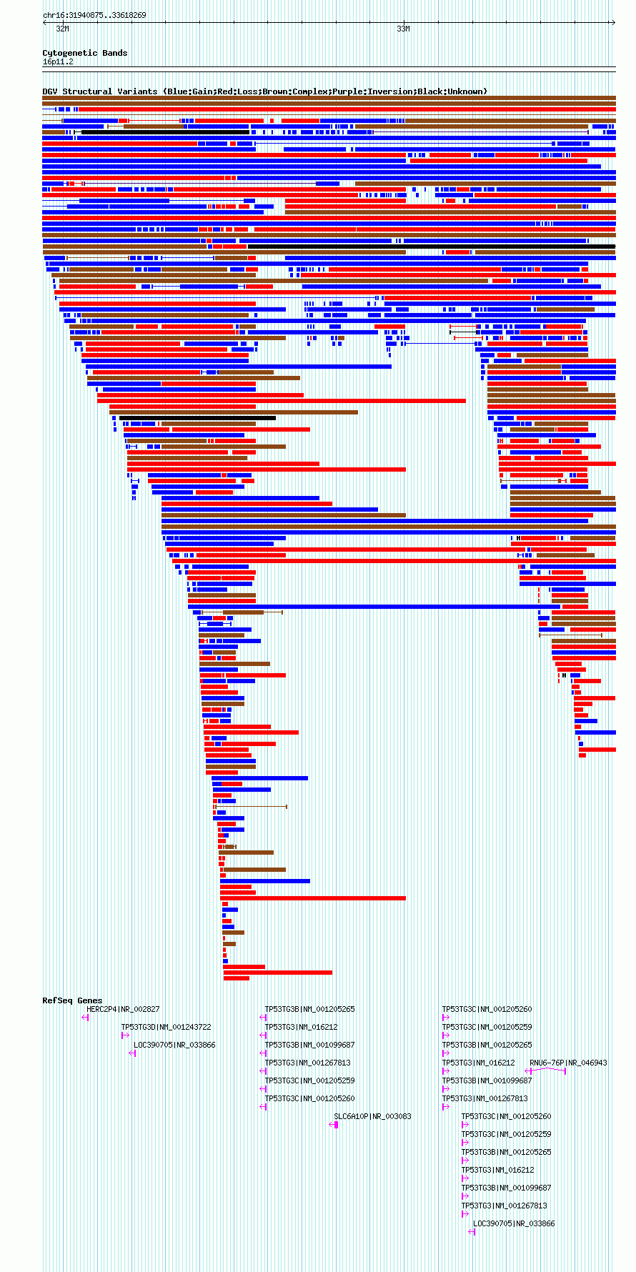 Variant DetailsVariant: nsv1064260| Internal ID | 19153479 | | Landmark | | | Location Information | | | Cytoband | 16p11.2 | | Allele length | | Assembly | Allele length | | hg38 | 1886249 | | hg19 | 1677395 | | hg18 | 1677395 |