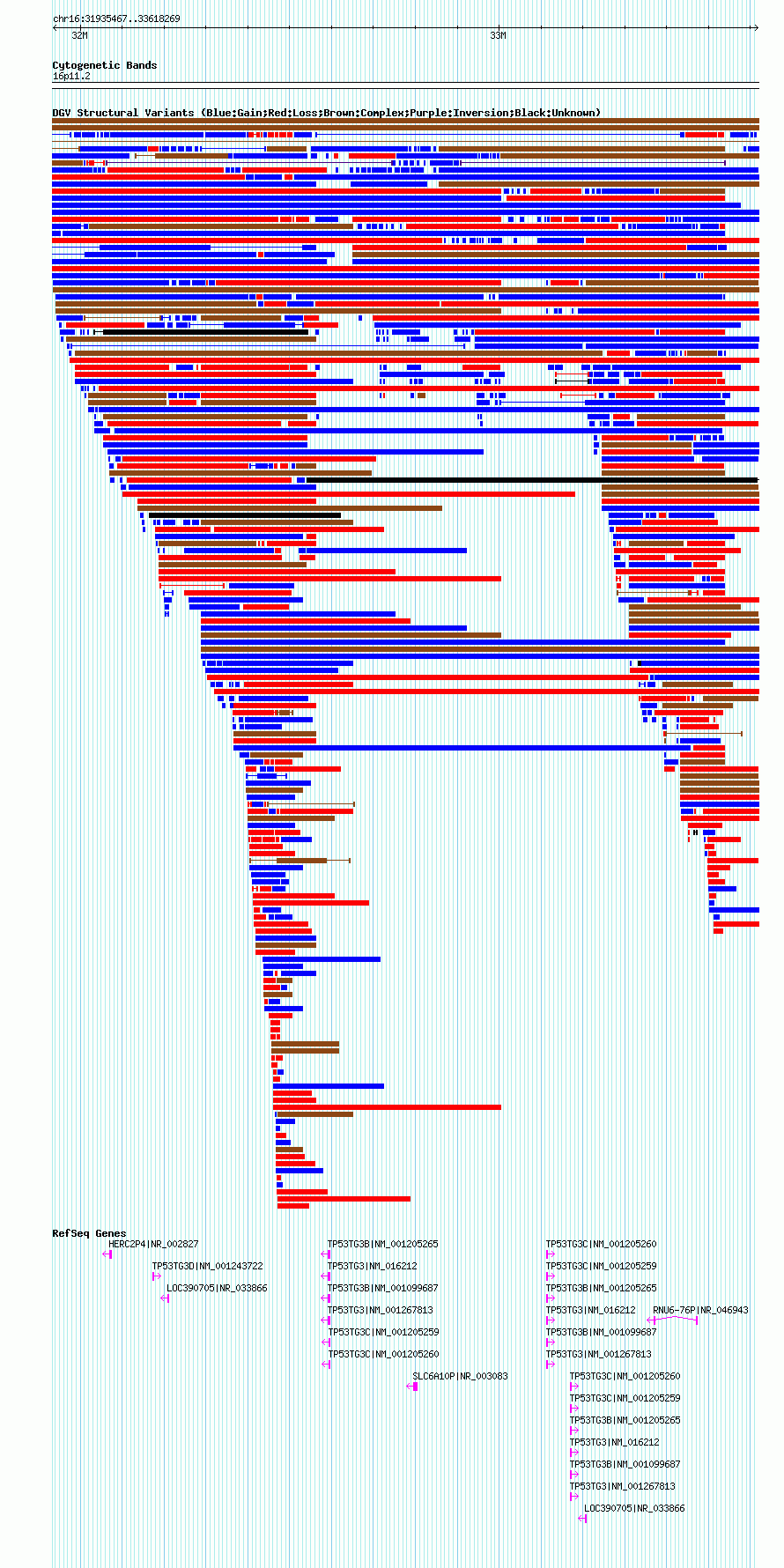 Variant DetailsVariant: nsv1064411| Internal ID | 19153630 | | Landmark | | | Location Information | | | Cytoband | 16p11.2 | | Allele length | | Assembly | Allele length | | hg38 | 1891657 | | hg19 | 1682803 | | hg18 | 1682803 |