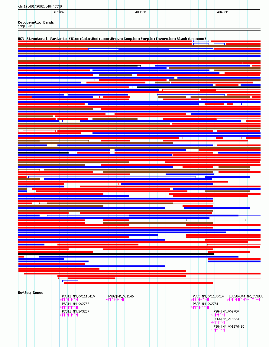 Variant DetailsVariant: nsv1064459| Internal ID | 19153678 | | Landmark | | | Location Information | | | Cytoband | 19q13.31 | | Allele length | | Assembly | Allele length | | hg38 | 295457 | | hg19 | 295457 | | hg18 | 295457 |