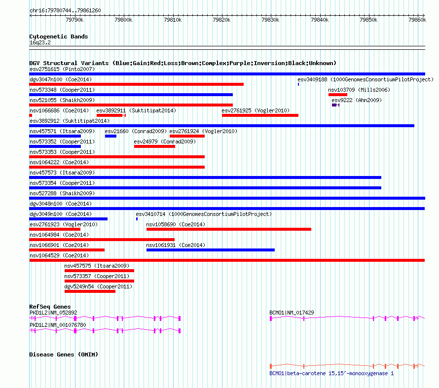 Variant DetailsVariant: nsv1064529| Internal ID | 19153748 | | Landmark | | | Location Information | | | Cytoband | 16q23.2 | | Allele length | | Assembly | Allele length | | hg38 | 80517 | | hg19 | 80517 | | hg18 | 80517 |