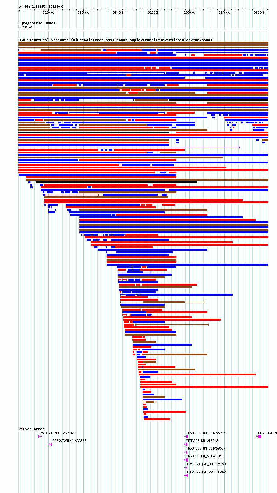 Variant DetailsVariant: nsv1064661| Internal ID | 19153880 | | Landmark | | | Location Information | | | Cytoband | 16p11.2 | | Allele length | | Assembly | Allele length | | hg38 | 706768 | | hg19 | 706768 | | hg18 | 706768 |