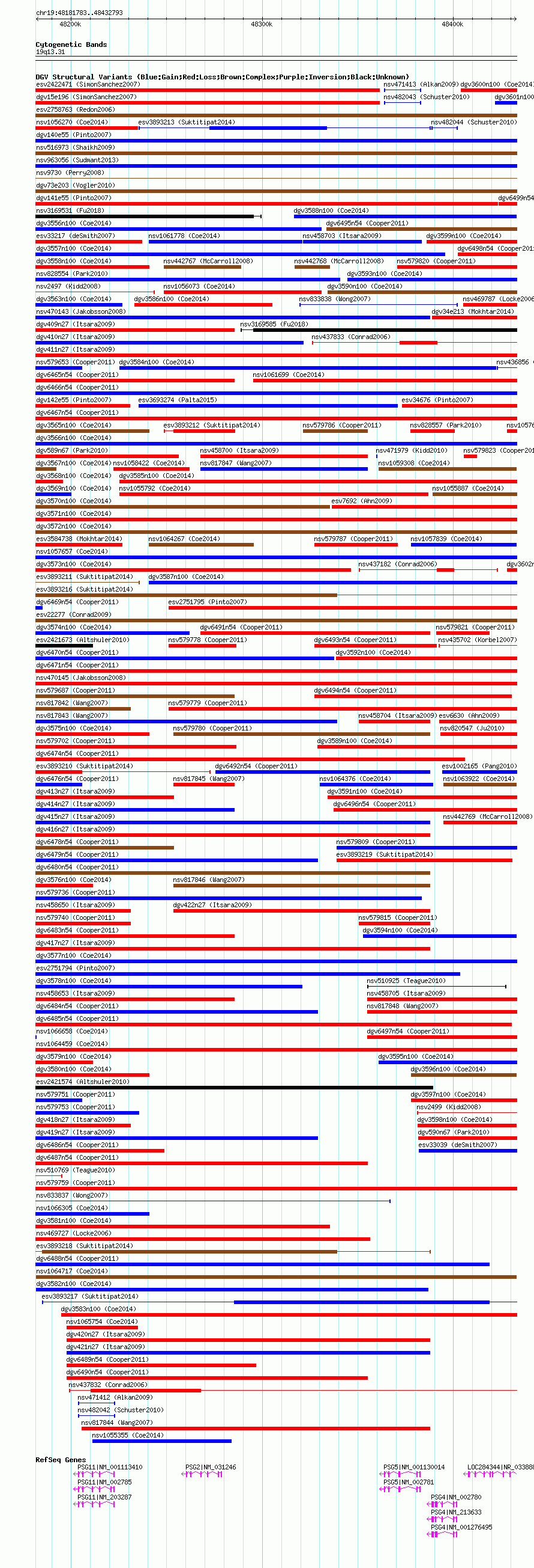 Variant DetailsVariant: nsv1064717| Internal ID | 19153936 | | Landmark | | | Location Information | | | Cytoband | 19q13.31 | | Allele length | | Assembly | Allele length | | hg38 | 251011 | | hg19 | 251011 | | hg18 | 251011 |