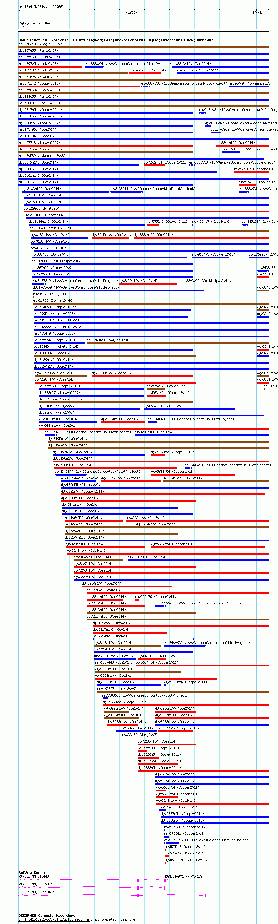 Variant DetailsVariant: nsv1064763| Internal ID | 19153982 | | Landmark | | | Location Information | | | Cytoband | 17q21.31 | | Allele length | | Assembly | Allele length | | hg38 | 200364 | | hg19 | 200364 | | hg18 | 200323 |